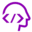 Purple stylized rocket icon launching from a central circle with concentric grid lines on a purple gradient background.